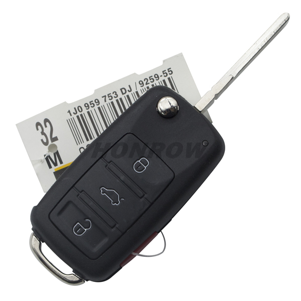 For Audi A8 3+1 button flip Remote key with 433Mhz