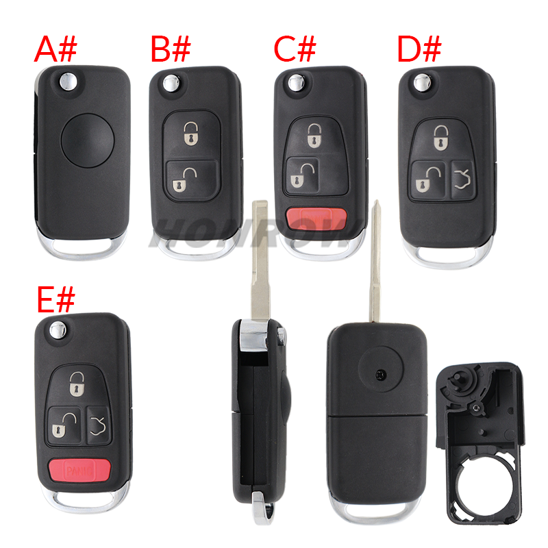 For Benz 1/2/2+1/3/3+1 button modified remote key shell with HU64 key blade