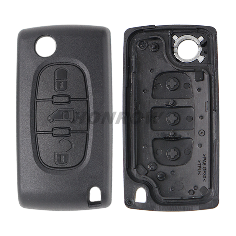 For Fiat 3 buton flip remote key blank with battery place HU83 blade,The back is smooth