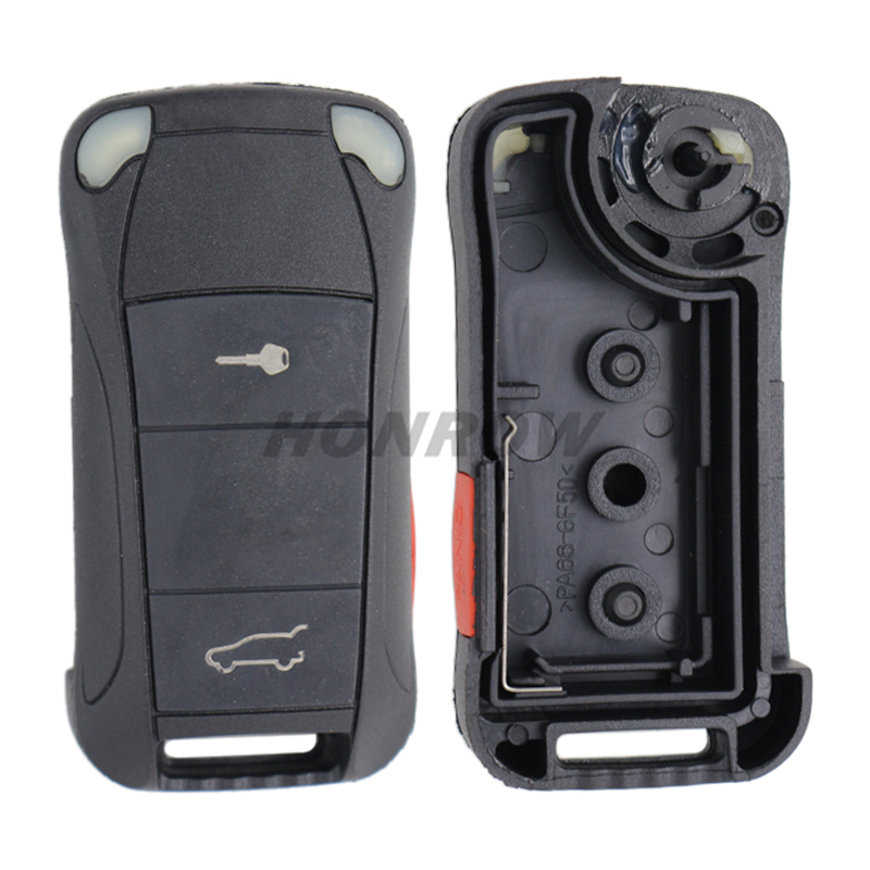 For Por Cayenne 2+1 button flip remote key blank with red panic