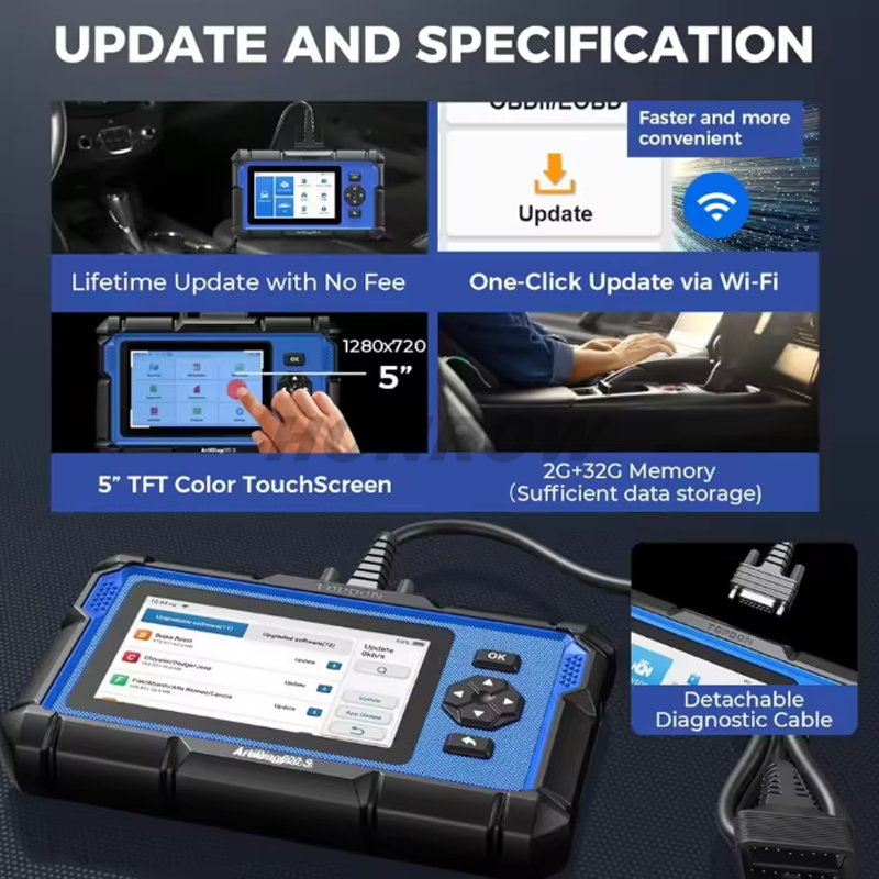 TOPDON Artidiag 600S Mid-level Diagnostic Tool ABS SRS TPMS Engine 8 Reset Functions Diagnostic Tool Scanner